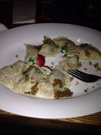 Dal portoncino in legno di “Kluska Polska” si entra in un mondo surreale e fantastico, un incrocio tra le casette delle favole ed un fumetto, una piccola saletta completamente dipinta come un disegno a matita fatto dalla mano di uno gnomo, mobili e bagno compresi. Anche qui i pierogi (il piatto forte polacco) imperano come in tutta Varsavia, con tutti i loro ripieni cotti sia bolliti che fritti (ravioli di acqua e farina pieni zeppi di carne o cacciagione, verdura o formaggio, cioccolata o marmellata, questi ultimi sono un po’ stucchevoli), e gli gnocchi con goulash e le zuppe come al solito sono ottimi. Qui ho mangiato anche una specie di fagottini fritti (un incrocio tra pasta sfoglia e pasta di pizza) con carne di maiale o funghi ricoperti di semi di papavero che meritano di essere assaggiati. L’atmosfera è simpatica e festosa, il servizio veloce e cordiale….buona anche la birra Tyskie pilsener che si finisce a bere a litri. I dolci come al solito, come il resto dei piatti, sono serviti in porzioni sovradimensionate. Il menu è realizzato con foto e tradotto in inglese il che si traduce presto in un valido aiuto. Bisogna prenotare durante il fine settimana, io ho provato ben tre volte prima di riuscire a sedermi ad uno dei loro tavoli bianchi disegnati come se fossero apparecchiati. ( abbiamo speso 12 euro a testa).