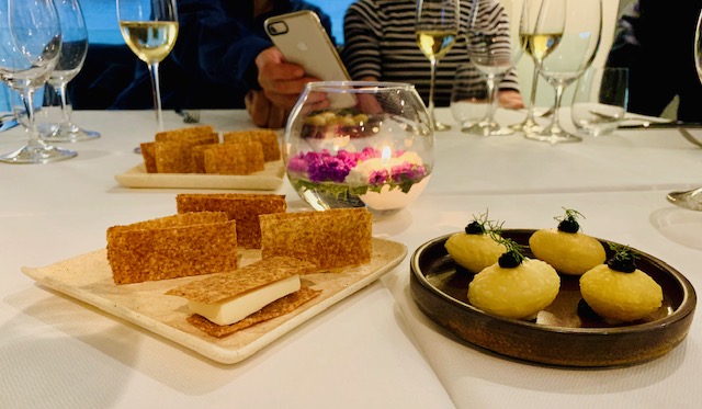 In carta piatti altrettanto interessanti, tra cui il “Risotto riserva San Massimo alla camomilla, anguilla affumicata e origano”, la “Terrina di lingua con agretti e salsa tonnata”, il “Croccante di seppia alla puttanesca”, il “Reale di Manzo, rabarbaro, mandorle e melissa”, la “Ventresca di tonno rosso del mediterraneo e murici in porchetta”. Tra i dolci, della bravissima pastry chef Teresa Climati, troviamo il “Gelo di rabarbaro, mandorle, fragole e basilico”, il “Gelato al miele, limone ed erbe aromatiche” e “Oltre il giardino” con caprino, mele, asparagi e piselli.